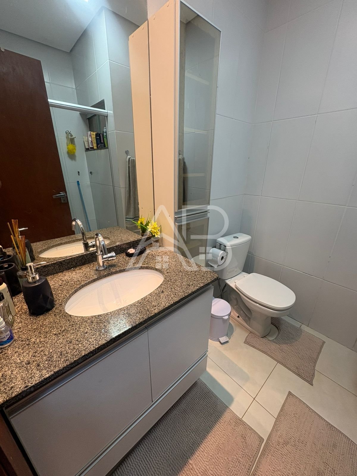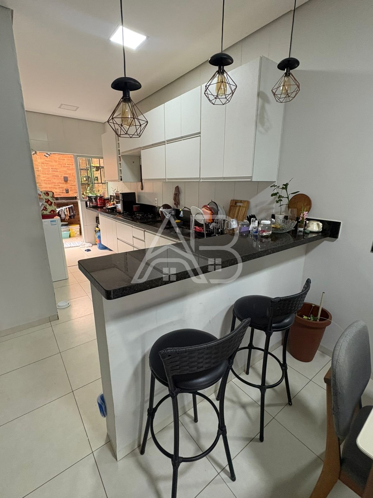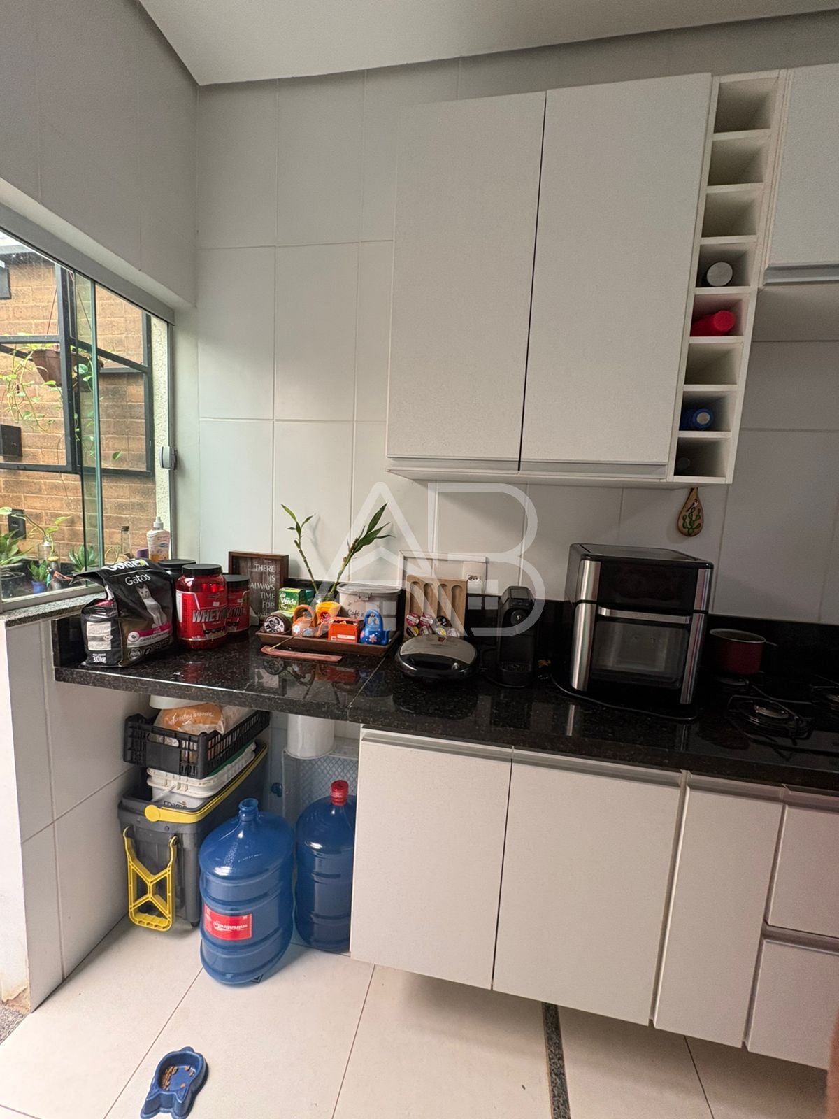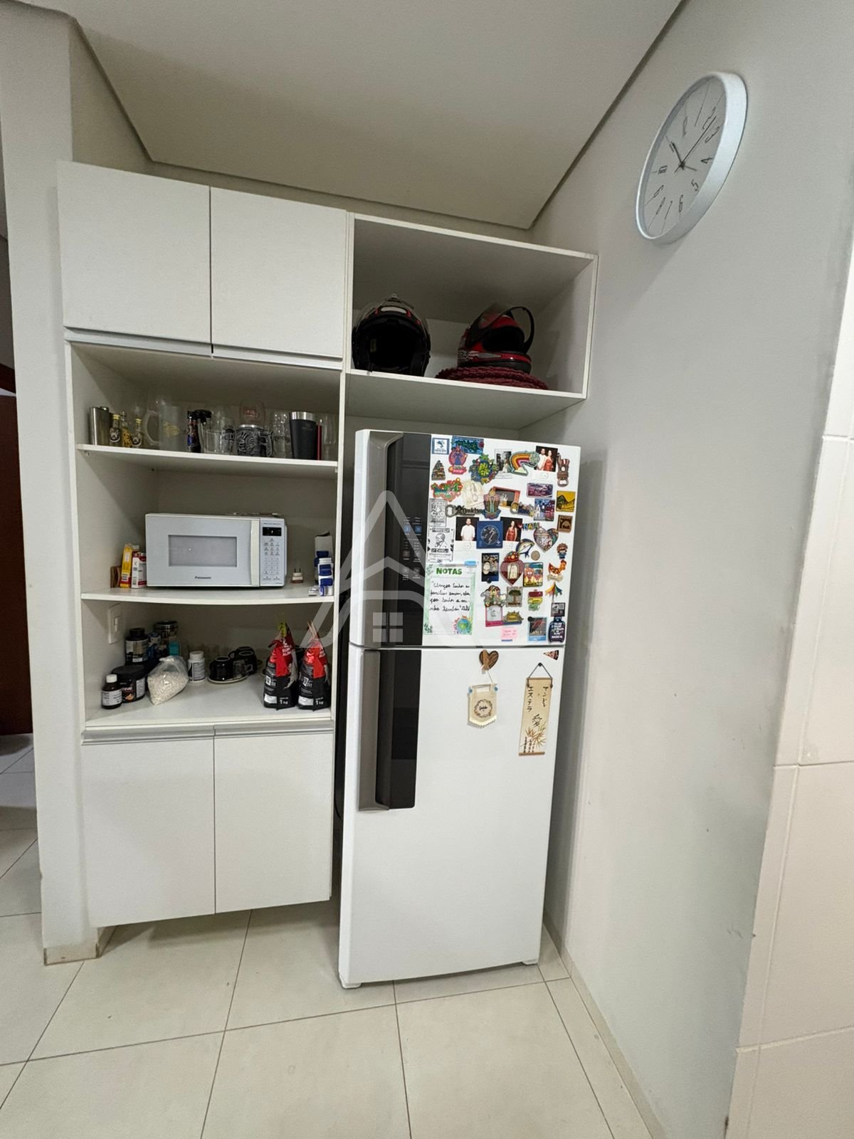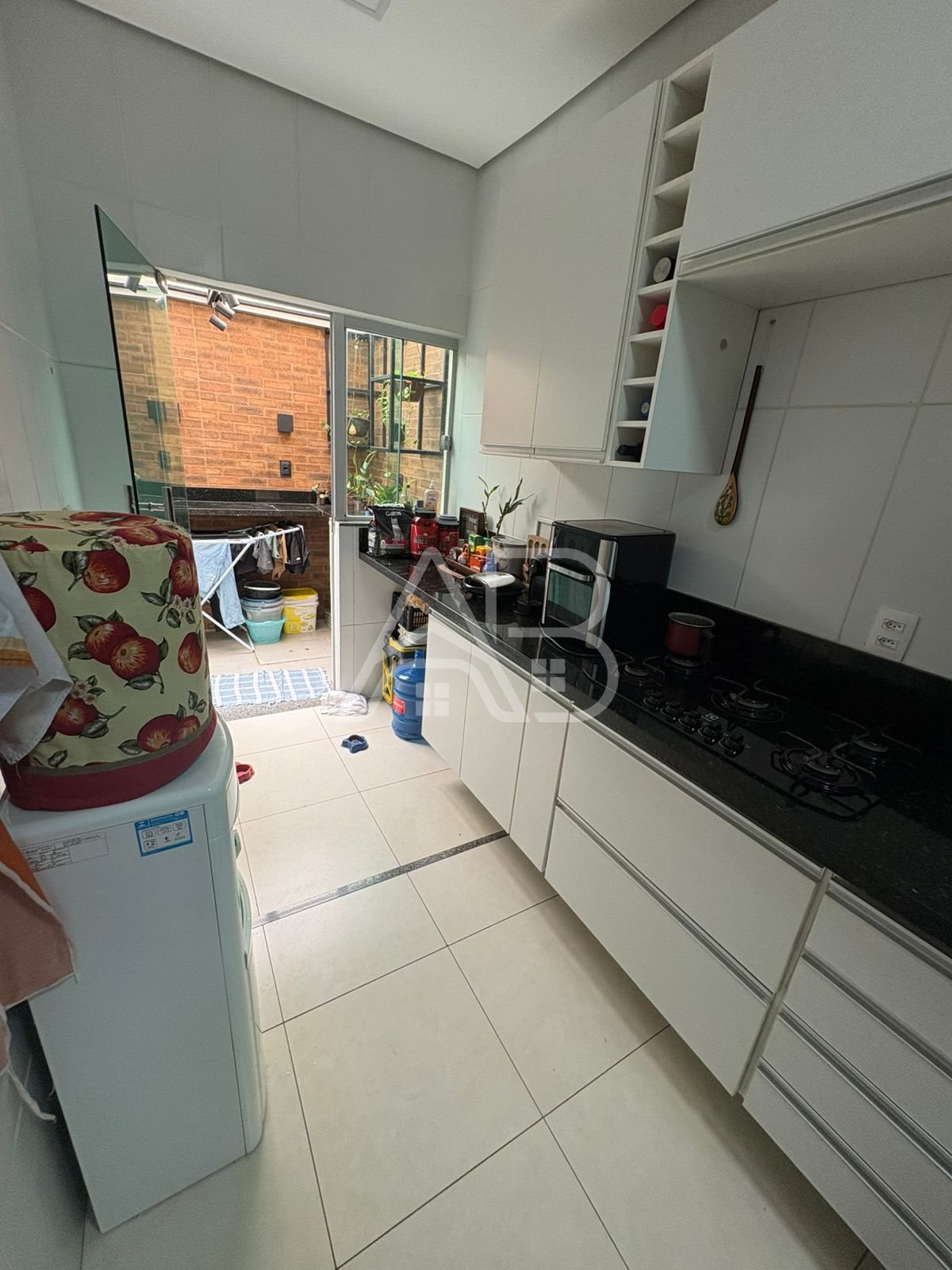 * A cozinha é equipada com móveis planejados, proporcionando um ambiente organizado e funcional para o preparo de refeições.