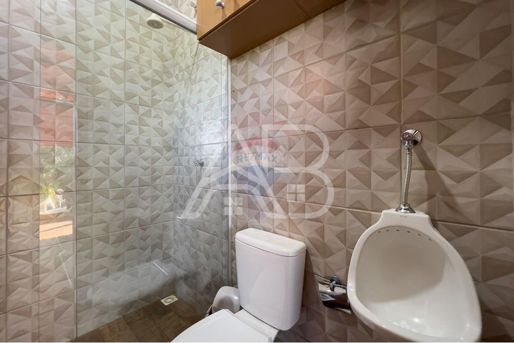 Banheiro com box blindex + lavabo em mármore.